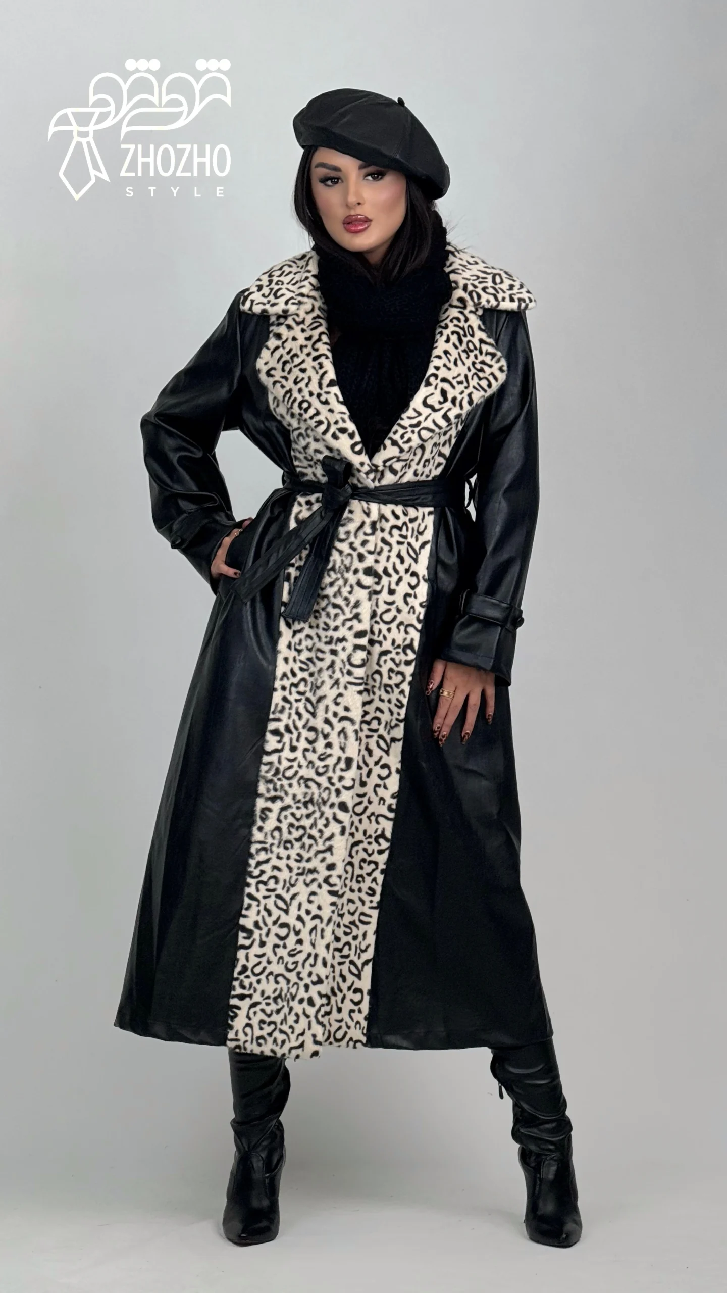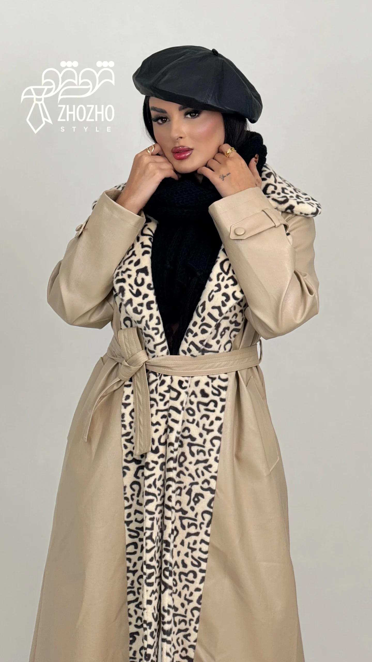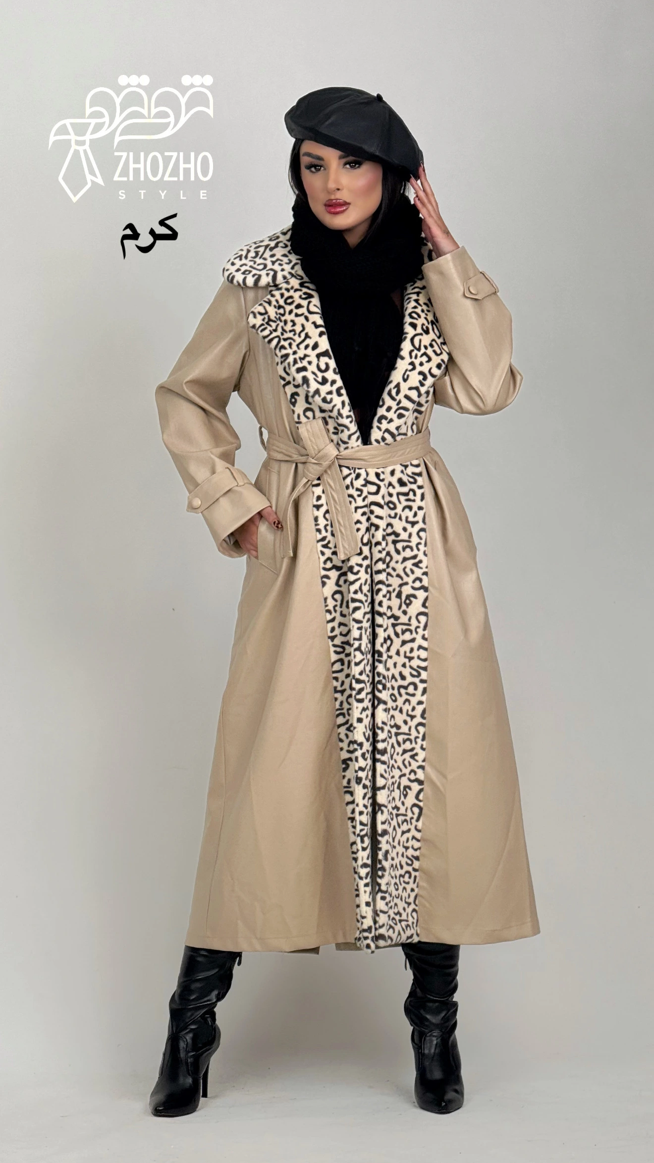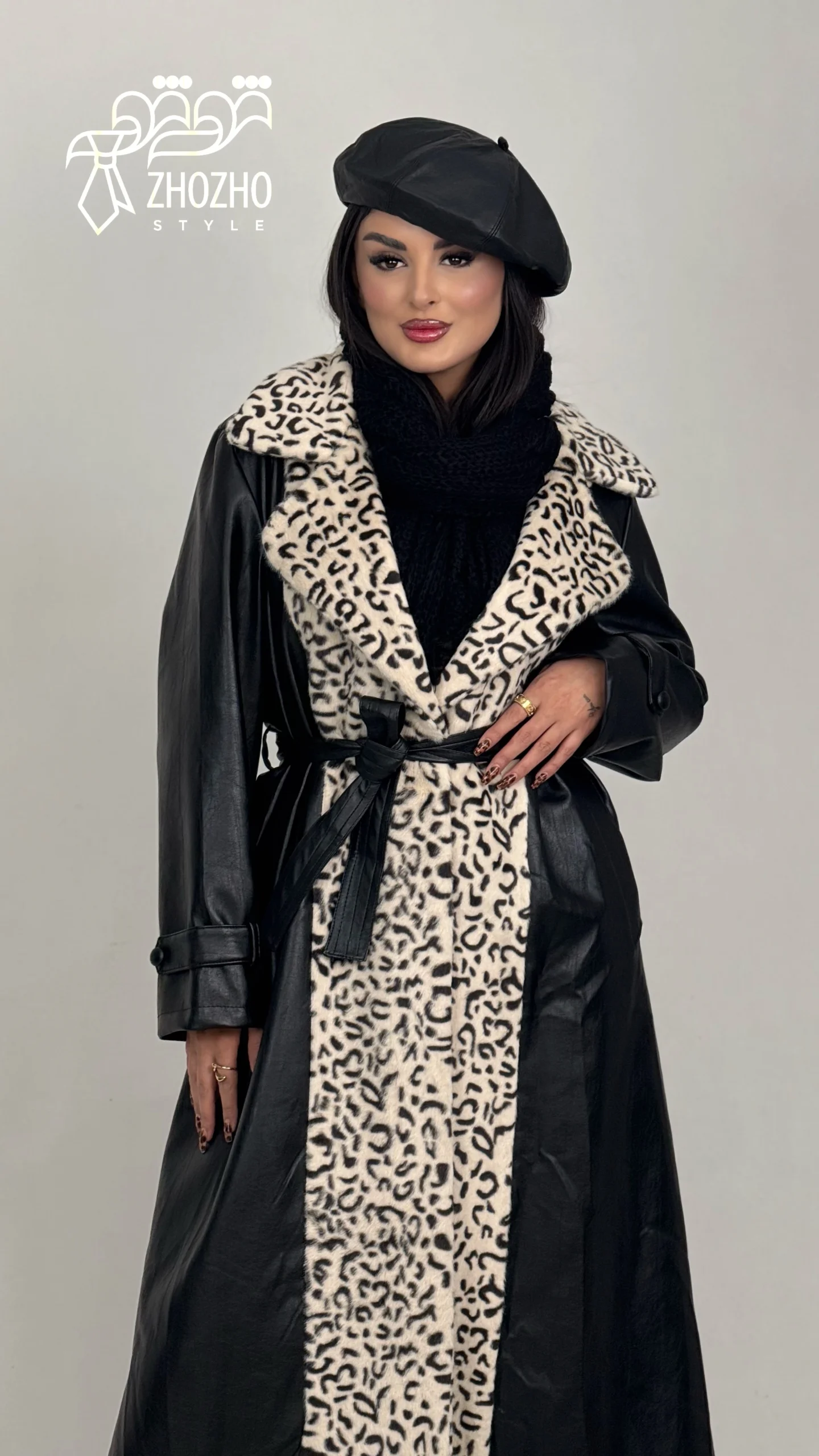 پالتوی چرم با ترکیب خز پلنگی که امسال خیلی ترند شده